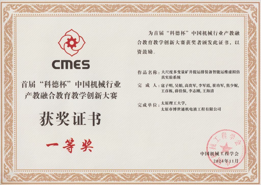 此次获奖不仅是对永利官网教师团队教学改革创新的认可,更是对我们学院致力于培养高素质工程技术人才努力的肯定。我们将以此为契机,继续推进人才培养“一号工作”、不断深化产教融合、激发新质生产力,探索更多有效的教育教学模式,为国家培养更多的拔尖创新人才。中国机械工业联合会和中国机械工程学会的专家评委对永利官网教师团队的表现给予了高度赞扬,并期待未来能够为中国机械行业的发展做出更大的贡献。