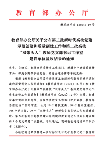 近日,教育部办公厅公布了第三批新时代高校党建示范创建和质量创优工作验收结果,永利集团304am登录机设系党支部顺利通过验收。