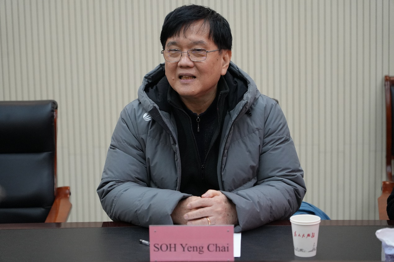 武佐君代表学院对SOH Yeng Chai教授的到来表示热烈欢迎,他介绍了学院的悠久历史和基本情况,希望本次交流能够增进双方了解,探讨未来合作方向,为学院国际化发展注入新的动力。