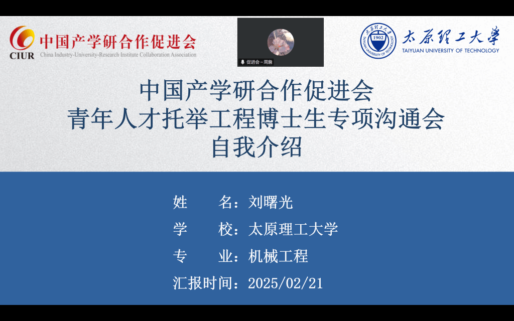 2月21日下午,中国产学研合作促进会于线上召开中国科协青年人才托举工程博士生专项计划沟通会议,会议由中国产学研合作促进会标准化工作办公室主任周詹主持。在沟通会议上,永利官网博士生刘曙光进行了个人基本情况、学术研究方向、产学研实践经历等方面的自我介绍,并与来自浙江大学、同济大学、重庆大学、湖南大学等高校的优秀博士生进行了友好交流。