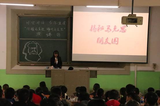 本次青马培训班主题是“时空对话 百年重逢”—生活中的马克思。现在的中国已经站在新的历史起点,开启了新的历史征程,学习宣传贯彻习近平新时代中国特色社会主义思想和党的十九大精神是全体团员的必修课。而这一切,追根溯源离不开无产阶级的精神领袖,国际共产主义运动的开创者马克思。宣讲团成员的精彩讲解把同学们带入了马克思的生活,宣讲内容包括青年时期的马克思、马克思的爱情、马克思的朋友圈以及马克思经历的苦难历程等方面。从学生的角度解读马克思的成长历程以及马克思主义的形成过程。期间,同学们积极参与互动、受益匪浅。
