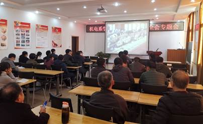 11月11日下午,机械电子工程系在机械馆二层会议室召开学习党的十九届四中全会专题会议,机电系党员干部和教师参加了此次会议。会议由机电系党支部副书记韩建超主持。