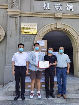 6月30号下午15点,广州友沃医疗用品有限公司向机械与运载工程学院捐赠口罩仪式在永利集团304am登录迎西校区机械馆举行,学院党委书记赵惠民、院长王志华等院领导出席交接仪式,此次捐赠口罩共一万只,全部用于永利官网的疫情防控工作。