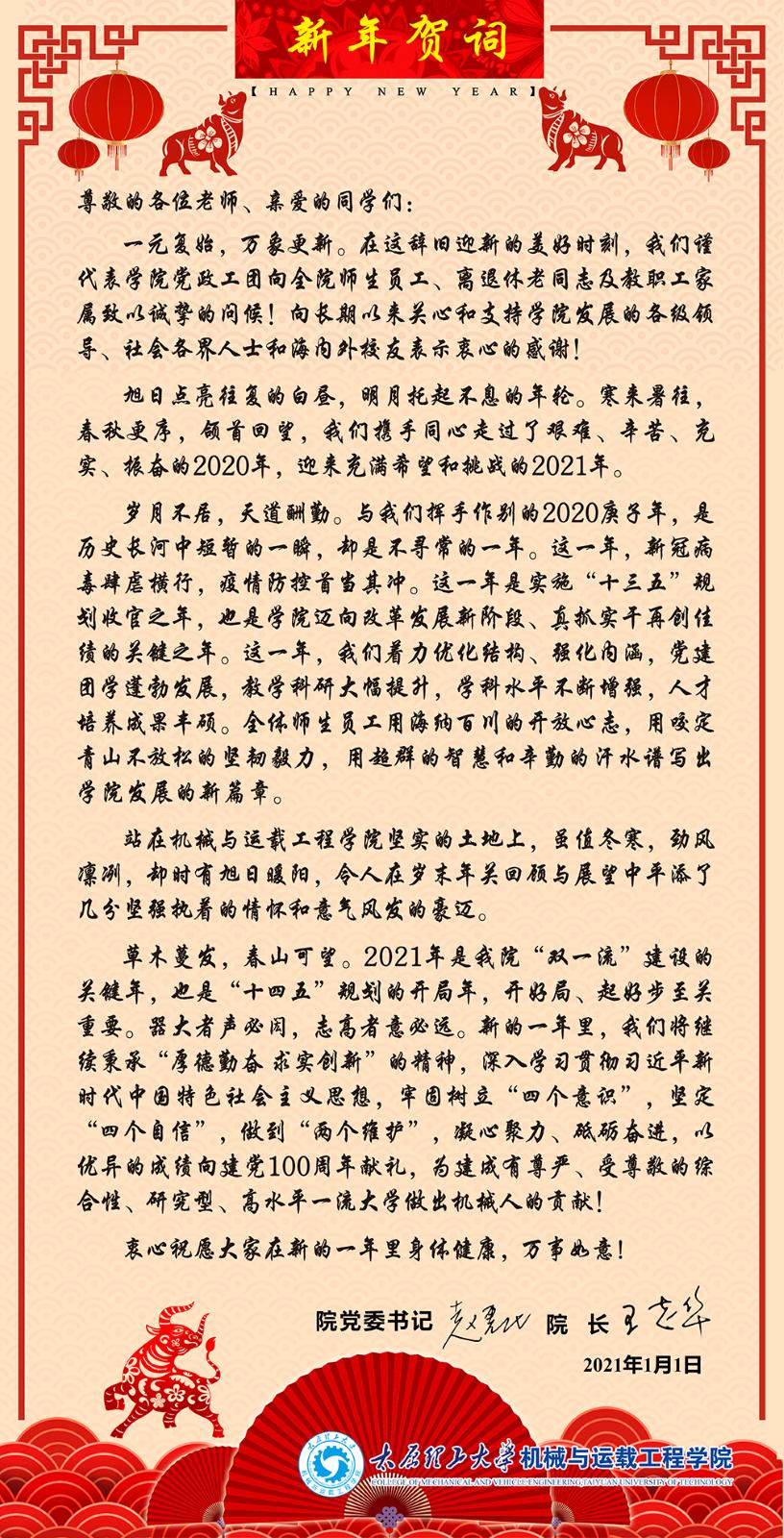 机械与运载工程学院2021年新年贺词