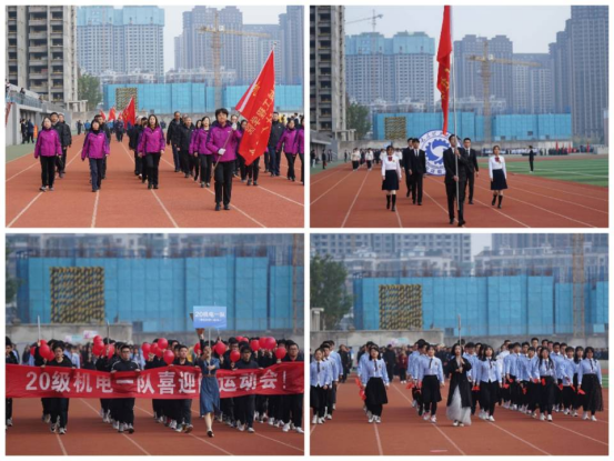 八时整,伴着激昂的运动员进行曲,院旗院徽队率先入场,接着,25支代表方队踏着整齐有力的步伐,精神抖擞、斗志昂扬,依次通过主席台接受师生检阅。入场完毕,全场进行了庄严的升旗仪式。