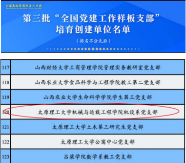 喜报:永利官网机设系党支部入选“全国党建工作样板支部”培育创建单位