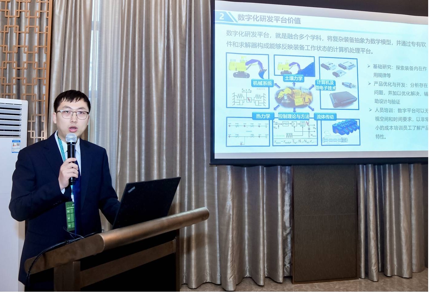 权龙教授担任会议程序委员会副主席,受邀在主会场作了题为《工程机械电液控制系统智能化路径探索》的主题报告,介绍了团队近来的最新研究成果。葛磊副研究员为大会组织委员会委员,作了题为《工程装备高能效泵控系统研究》的青年论坛报告;夏连鹏副研究员作了题为《体验式教育--复杂机电液装备系列化平台》的报告,展现了我校机电专业在科研与教学中取得的最新成果。博士生梁涛、赵星宇和硕士生刘珊珊参加了分会场报告,将永利官网机电系统节能与智能控制团队的研究成果向国内外同行进行了分享和交流。