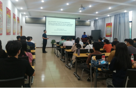 会上,赵敬伟首先对专家进行了介绍,并希望广大师生通过交流激发灵感、拓展思路。朱洪涛副教授和万善宏研究员分别以“用于核辐射环境的新型低活化耐火中熵合金研发”和“高温摩擦学”为题,为与会者呈现了精彩的报告。参会师生兴致盎然、积极提问,现场气氛热烈。