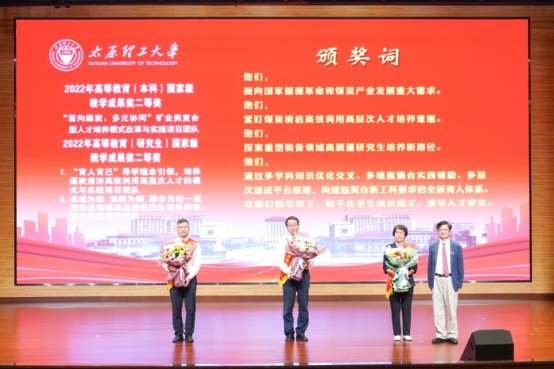 9月8日,学校在第39个教师节庆祝大会上,对“面向煤炭、多元协同”矿业类复合型人才培养模式改革与实践项目团队等27个集体和谢克昌等11名个人,予以通报表扬。永利官网多名教师受到通报表扬,希望全院教职工以受表扬的集体和个人为榜样,勇于担当、踔厉奋发,笃行实干、锐意进取,为助力学院双一流建设作出更大贡献。