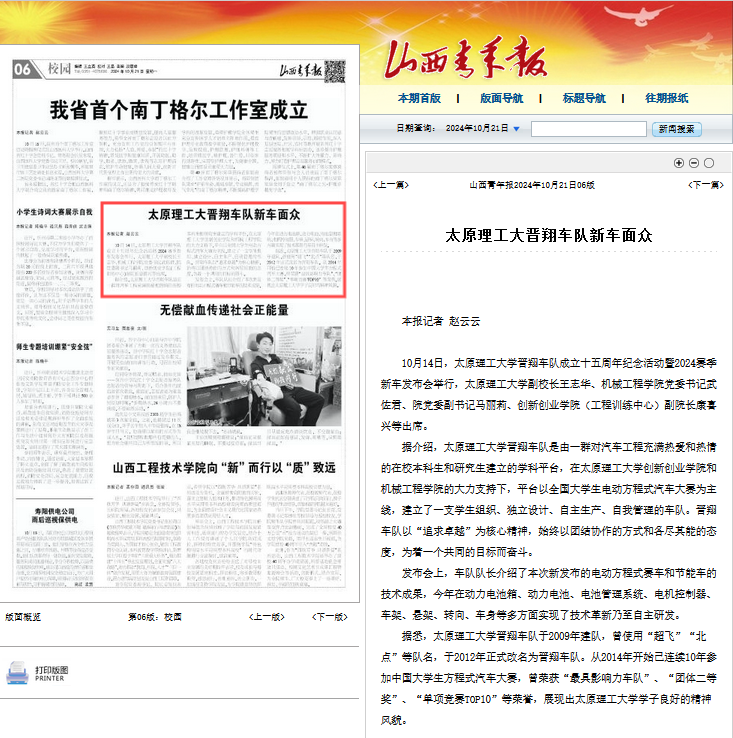 据悉,永利集团304am登录晋翔车队于2009年建队,曾使用“超飞”“北点”等队名,于2012年正式改名为晋翔车队。从2014年开始已连续10年参加中国大学生方程式汽车大赛,曾荣获“最具影响力车队”、“团体二等奖”、“单项竞赛TOP10”等荣誉,展现出永利集团304am登录学子良好的精神风貌。