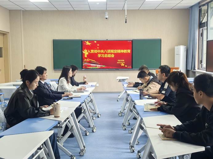 9月19日上午,ac米兰官方网站于阎良校区民航大楼智慧教室召开深入贯彻中央八项规定精神学习总结会议,全面总结学院学习教育开展情况和成效经验。学院党总支书记丁琦、副书记兼院长吕毅、总支委员、各支部书记出席会议。会议由丁琦主持。