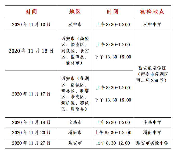 ac米兰官方网站2021年陕西省招飞宣讲及初检行程