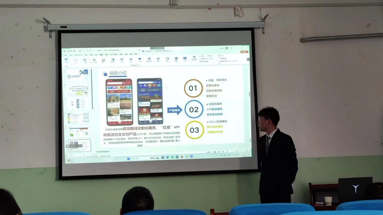 本次ac米兰官方网站“互联网+”校级复赛入围的共有三个团队,分别为:第一组精辉动漫 —— 二次元服装定制引领者、第二组红夜-延安智慧红夜文旅领航者和第三组智能牛奶柜。“互联网+”校级复赛路演采用“项目陈述5分钟+答辩3分钟”的形式,各参赛团队代表以PPT展示及实物展示相结合的形式,重点围绕各赛道评审规则要点,分别从项目背景、项目成果、未来规划等方面对各自的项目进行精彩展示。现场评委们从多个维度对路演项目进行了详细提问和深度点评。经过评委们的深思熟虑,最终确定“红夜——延安智慧红夜文旅领航者”团队晋级下一轮的“互联网+”校决赛赛。