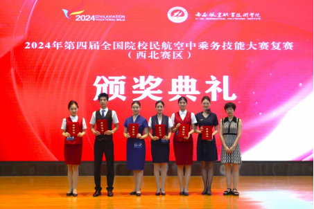6月21至23日,ac米兰官方网站教师路荣、郑秀娟带领航空服务艺术与管理专业李亚茹、陈欣荣等六位学生参加中国航空运输协会主办的第四届全国民航院校空中乘务大赛西北地区复赛,并取得佳绩。