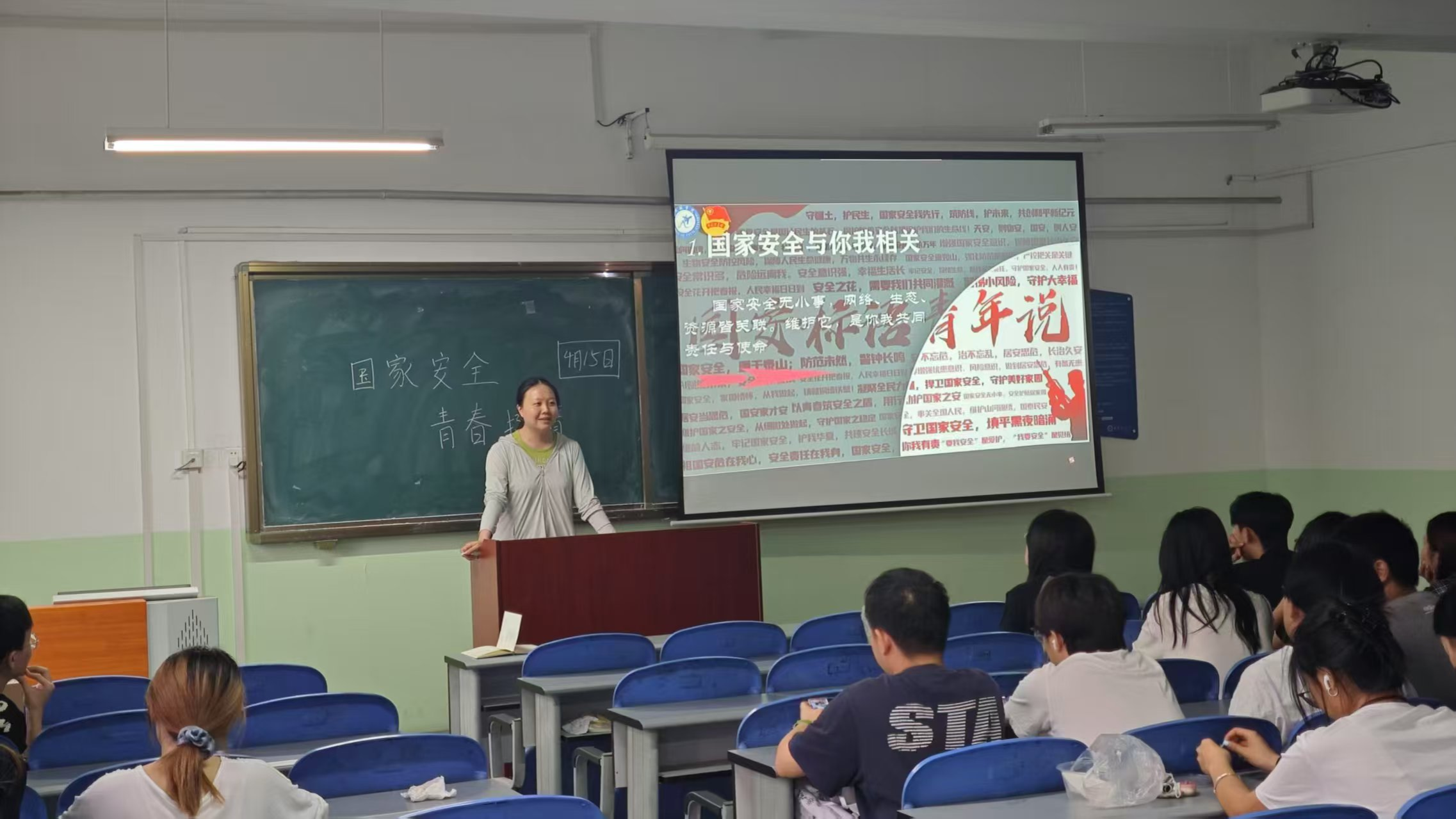 活动伊始,王晨紧密结合当前国际国内形势,围绕政治、科技、生态等多个重要领域,对总体国家安全观的丰富内涵进行了深入系统的阐释。期间,通过列举近年来危害国家安全的典型案例,并辅以生动详实的讲解,使同学们深刻认识到国家安全与每个人的生活紧密相连——那些看似离我们遥远的国家安全问题,实际上就存在于日常之中。同时她强调,维护国家安全是每个中国公民必须履行的神圣责任和应尽义务。